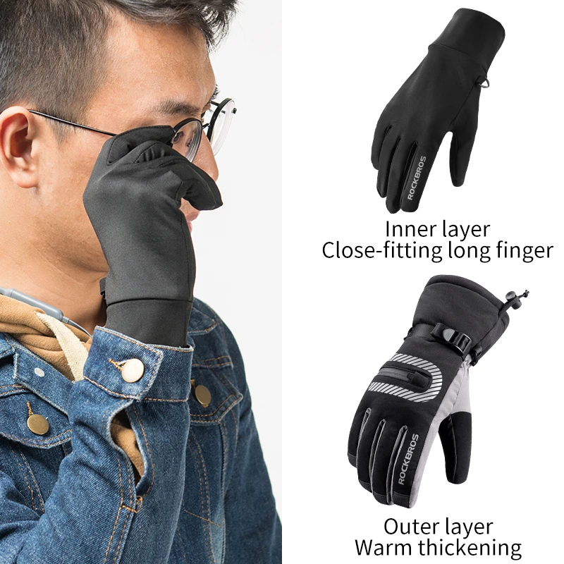 - ROCKBROS Ski Gloves Touch Screen Windproof Thermal Winter Snow Gloves Men Women Sport Snowboard Thick Anti-slip Skiing Gloves : Click here