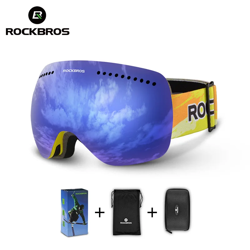 Discount : 46% ROCKBROS Ski Goggles Glasses Double Layers Windproof Skiing Anti-fog UV400 Snowboarding Spectacles